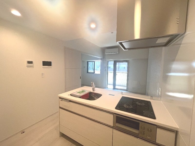 システムキッチン / 給湯 / シャワー付洗面台 / 温水洗浄便座 / 浴室乾燥機 / TV付浴室 / クロゼット / シューズボックス / バストイレ別 / シャワー / ガスコンロ / 2口コンロ / エアコン / 室内洗濯機置場 / フローリング / TVインターホン / インターホン / ネット使用料不要 / 宅配ボックス / バイク駐輪 / エレベーター