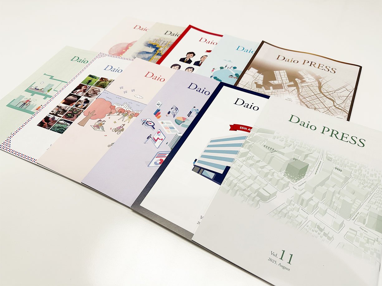 ご縁のあるお客様や街への感謝の気持ちを込め、社員一丸となって制作している広報誌「DaioPRESS」。